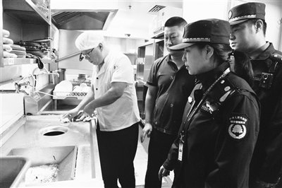 近日,石景山区五里坨街道综合行政执法队在五里坨辖区金海洋商业中心开展生活垃圾分类专项执法检查。当天,执法队对各商户垃圾分类进行重点检查,并检查餐饮单位后厨垃圾投放容器的完整性、桶身分类标识、桶身清洁状况以及是否按要求进行垃圾分类等。对于检查过程中存在的问题,执法队员现场进行指导并要求限期整改。